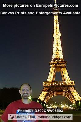 Photographer with Eiffel Tower, Paris, Dusk, Lighted