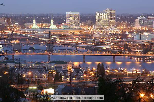 Willamette River, Bridges, Buildings, Facing NE Portland, Dusk