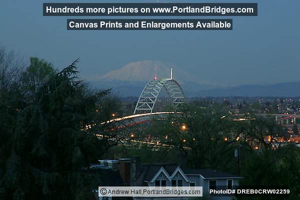 Fremont Bridge, Mt. Saint Helens, Dusk