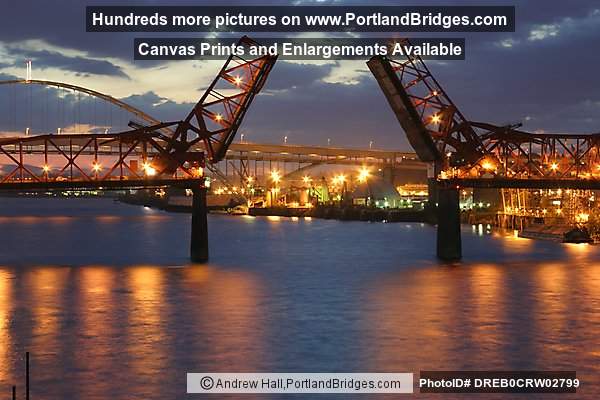 Willamette River, McCormick Pier, Broadway Bridge, Open, Dusk