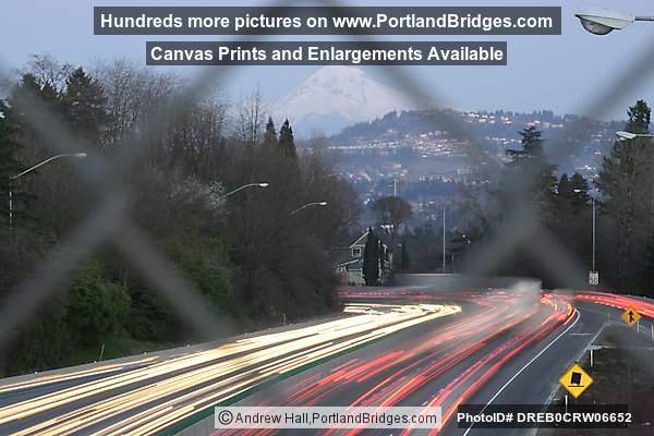 Terwilliger Curves, Car Lights, I-5, Mt. Hood, Dusk