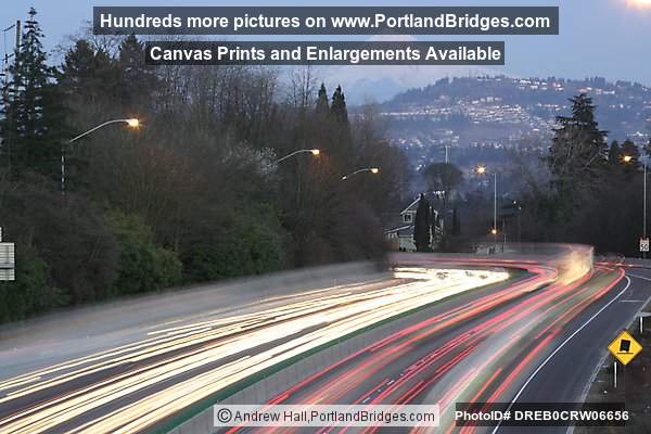 Terwilliger Curves, Car Lights, I-5, Mt. Hood, Dusk