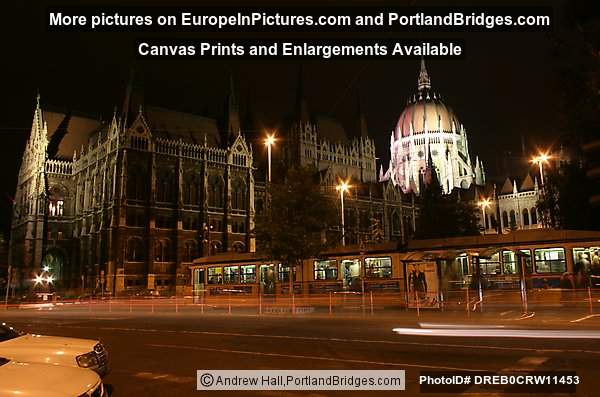 Parliament Building, Tram, At Night, Budapest