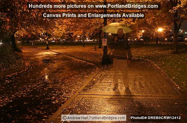Tom McCall Waterfront Park, Fall Leaves, Dusk, Rainy (Photographer in long exposure) (2)