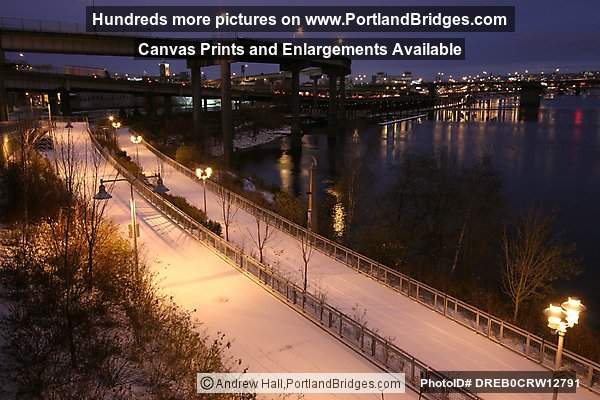 Hawthorne Bridge, Snow, Eastbank Esplanade