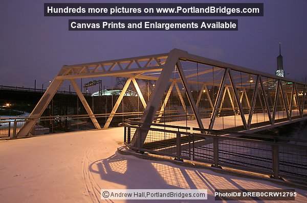 Rose Quarter Pedestrian Bridge to Eastbank Esplanade, Snowy, Night