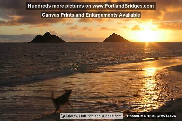 Oahu, Hawaii: Lanikai Beach, Sunrise, Dog