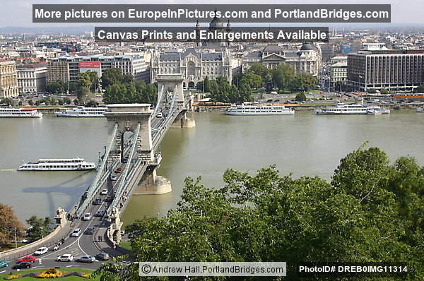 Chain Bridge from Viewpoint, Daytime, Budapest