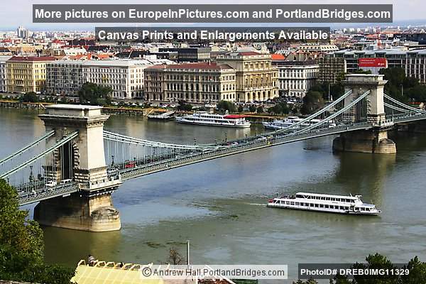 Chain Bridge, Boat, from Viewpoint, Daytime, Budapest