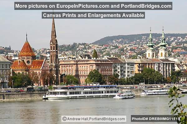 Chain Bridge, Boat, from Viewpoint, Daytime, Budapest