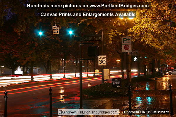 Naito Parkway, Rain, Light Streaks, Dusk