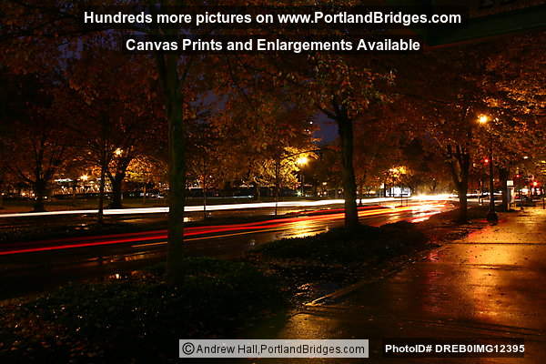 Naito Parkway, Rain, Light Streaks, Dusk