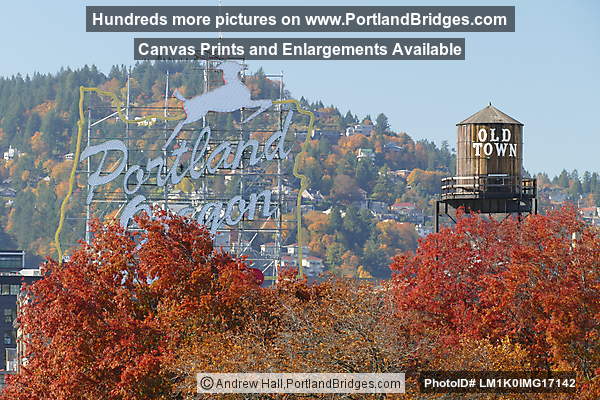 White Stag "Portland Oregon" Sign, Fall Leaves
