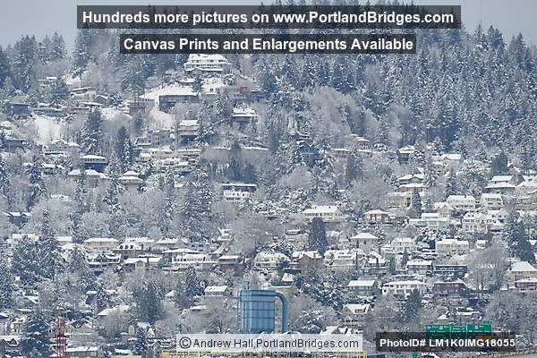 OHSU in the snow; Veteran's Hospital; Aerial Tram, West Hills