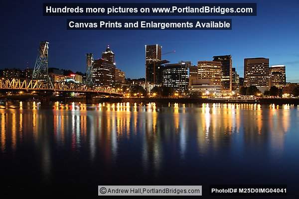 Hawthorne Bridge, Portland Skyline, Reflections, Dusk