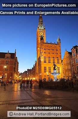 Main Town Hall, Ulica Dluga at Dusk, Gdansk, Poland