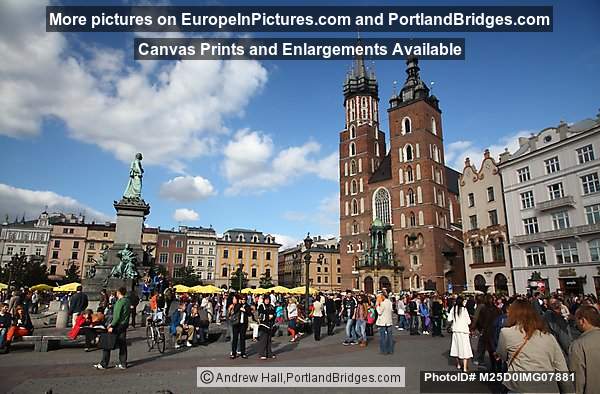 Rynek, St. Mary's Church at Night, Krakow, Poland