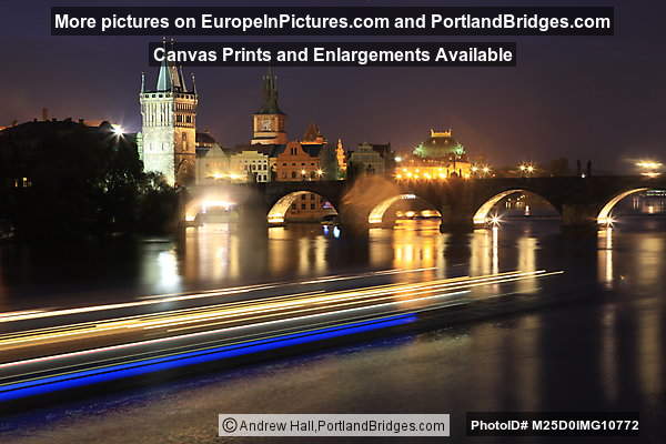 Charles Bridge, Light Streaks, Vltava River, Dusk, Prague