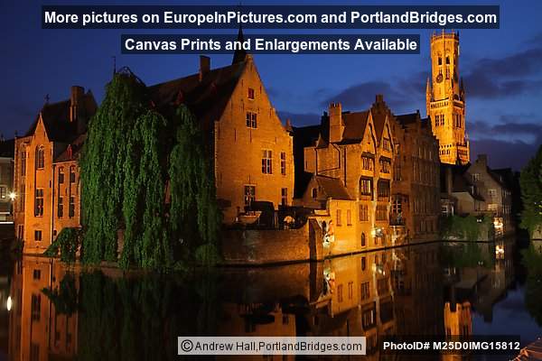 Bell Tower, Reflection, Dusk, Brugge (Bruges), Belgium