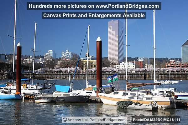 Boats, view of Downtown Portland from Eastbank Esplanade