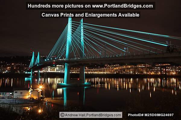 Portland Tilikum Crossing Bridge, Willamette River Reflections, Night