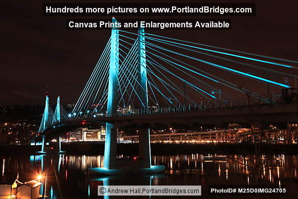 Portland Tilikum Crossing Bridge, Willamette River Reflections, Night
