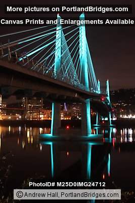 Portland Tilikum Crossing Bridge, Willamette River Reflections, Night