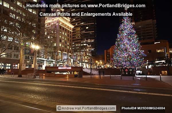 Pioneer Courthouse Square Christmas Tree, MAX Train, Portland