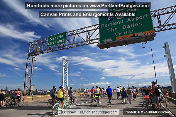 Bridge Pedal Cyclists on Marquam Bridge, I-84 Sign