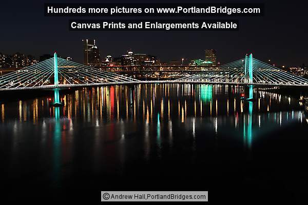 Tilikum Crossing Bridge, from Ross Island Bridge, Night