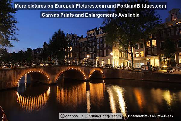 Bridge over Dijver Canal, Dusk, Brugge, Belgium