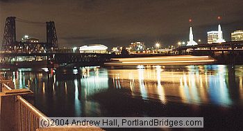 Steel Bridge, Rose Garden Arena, Willamette River, Reflection, Night
