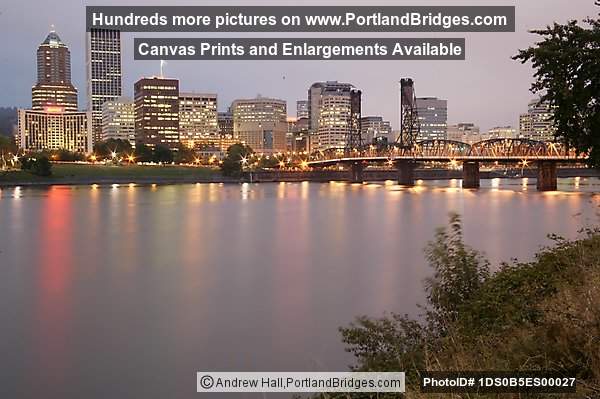 Portland Cityscape, Dusk, Reflections, Steel Bridge