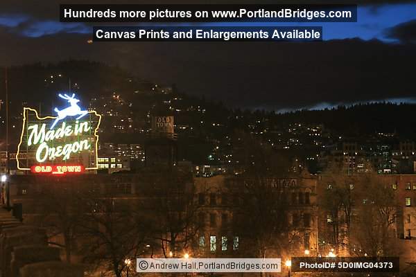 Made in Oregon Sign, Burnside Bridge, Car Lights, Night