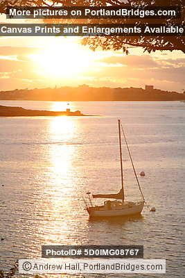 Fremont Bridge, Dusk, Orange Sky, Boat Passing