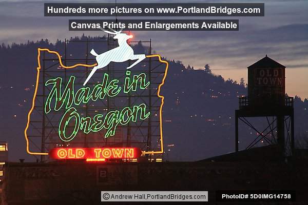 Made in Oregon Sign, Burnside Bridge, Car Lights, Night