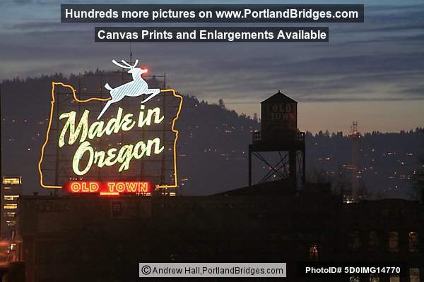 Made in Oregon Sign, Burnside Bridge, Car Lights, Night