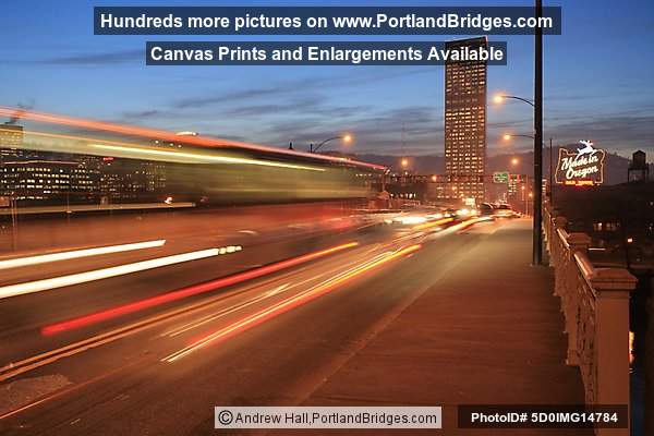 Made in Oregon Sign, Burnside Bridge, Car Lights, Night
