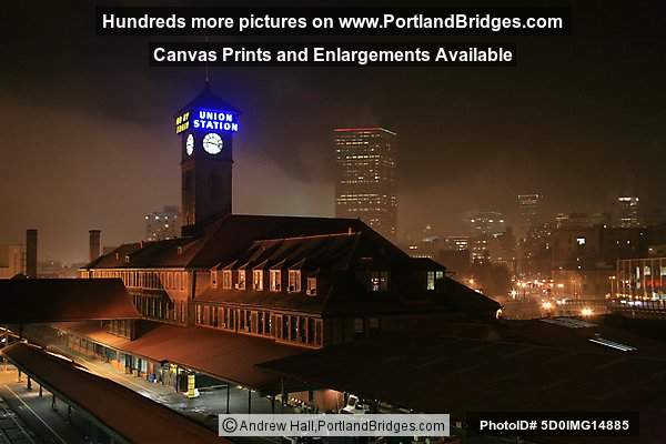 Portland, Oregon Cityscape, Reflections, Morrison Bridge, Lit, Dusk (3)
