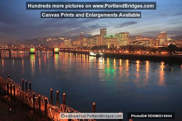 Portland, Oregon Cityscape, Reflections, Morrison Bridge, Lit, Dusk (4)