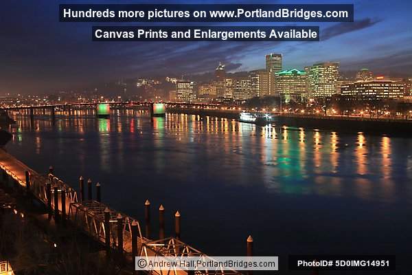 Portland, Oregon Cityscape, Reflections, Morrison Bridge, Lit, Dusk (5)