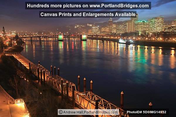 Portland, Oregon Cityscape, Reflections, Morrison Bridge, Lit, Dusk (5)