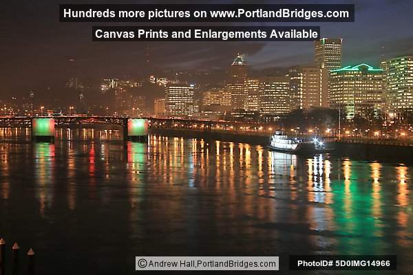 Portland, Oregon Cityscape, Reflections, Morrison Bridge, Lit, Dusk (5)