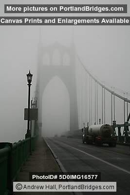 Morrison Bridge at Daybreak, Foggy, Lit Up