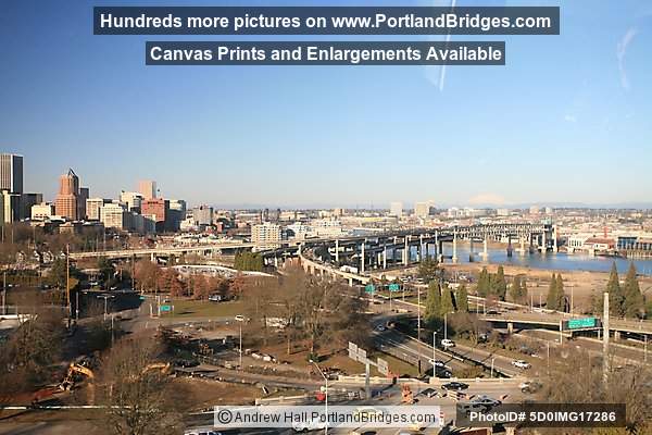 OMSI, Marquam Bridge, Mt. St. Helens from aerial tram (2)