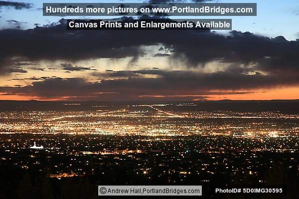 Steel Bridge and Fremont Bridge, Dusk, Willamette River