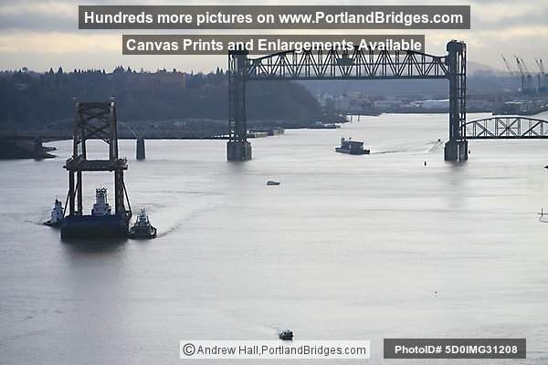 Sauvie Island Bridge New Span Floating Down Willamette River
