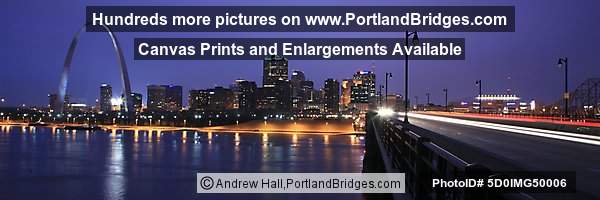 St. Louis Skyline, Dusk, Gateway Arch, Car Lights