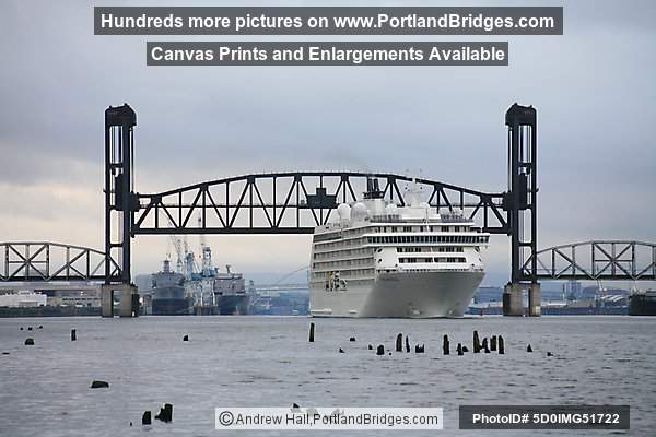 The World, Sailing through Railroad Bridge, from Portland, Oregon, June 19, 2009