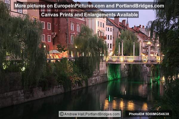 Ljubljana Triple Bridge at Dusk, reflections (2)